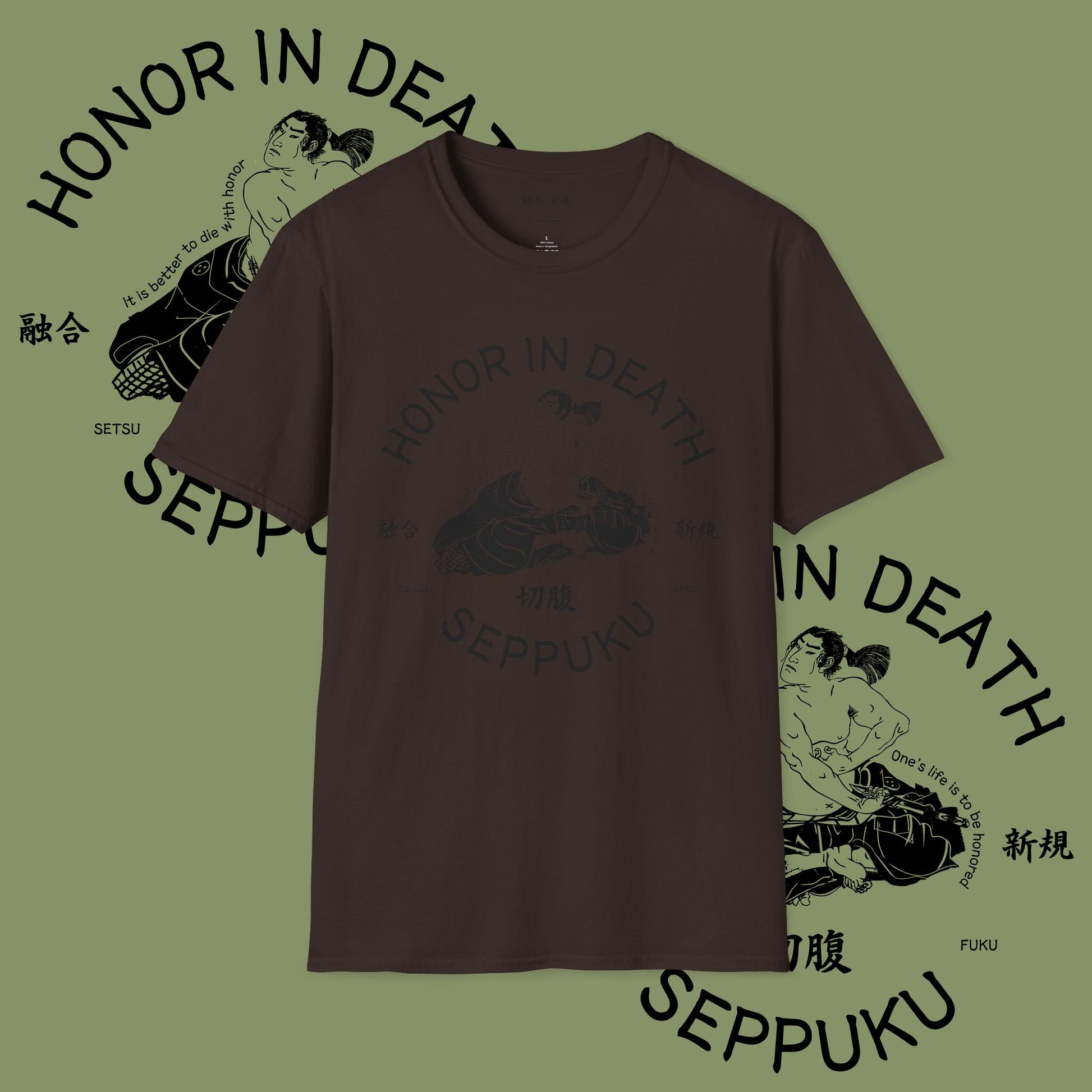 This T-Shirt features a design highlighting Seppuku, a Japanese ritual suicide associated with honor in death. The soft and durable fabric makes it comfortable for everyday wear. Perfect for those interested in Japanese culture and history, this tee can be a unique addition to your wardrobe. Relevant for fans of Japanese traditions and history, this shirt is suitable for casual wear or as a gift for someone passionate about Japanese culture.